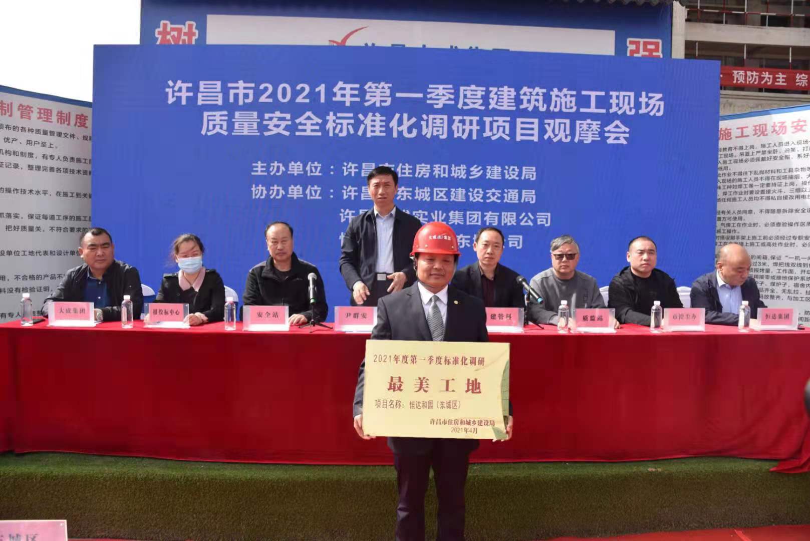 日前,许昌市2021年第一季度建筑施工现场质量安全标准化调研项目观摩会在恒达和园项目召开。许昌市住房和城乡建设局副局长尹群安,各县市区住建局相关领导以及集团公司董事长、总经理高峰参加了会议。
