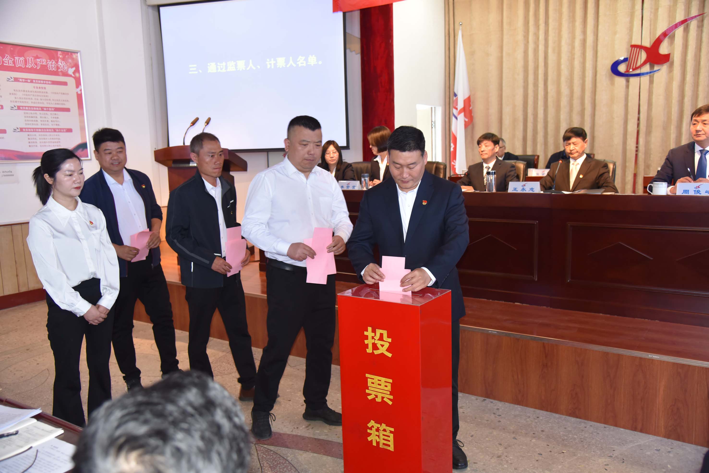大会严格按照《中国共产党章程》《中国共产党基层组织选举工作条例》等相关规定和程序,以无记名投票、差额选举的方式,选举产生了周俊峰、刘金鹏、李智新、李营营、张志娜、王秉权、冯广君为新一届党委委员;张京卫、鲁炎亮为纪检委员。新一届党委召开了第一次全体会议,选举周俊峰为党委书记、刘金鹏为党委副书记、张志娜为纪检书记。按照组织原则,会后,党委将换届选举的结果以正式文件的形式报告上级党组织批复。